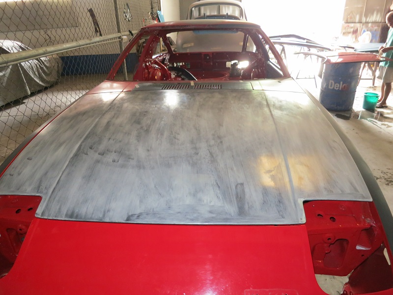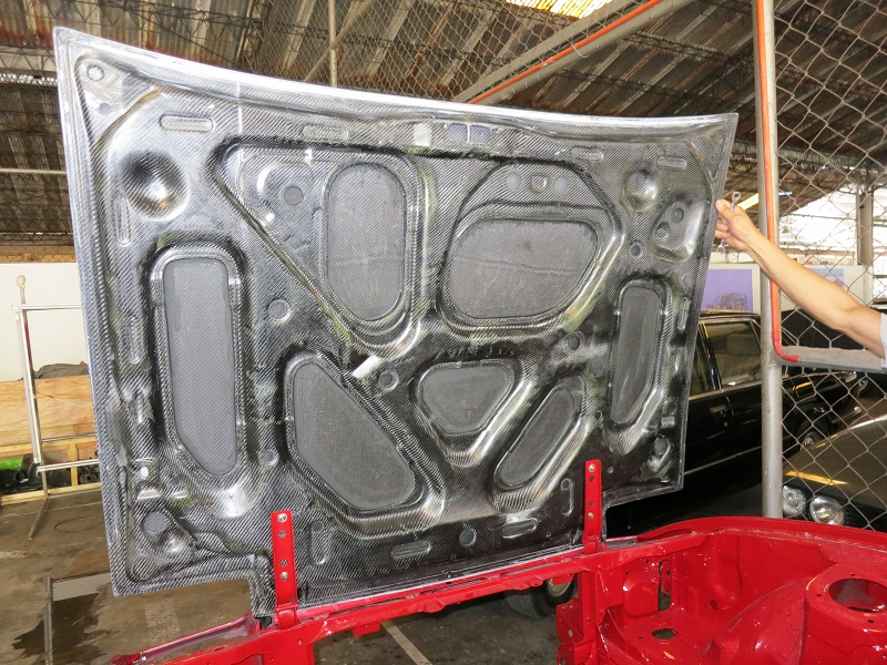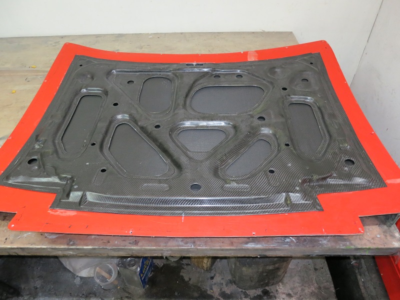 Carbon Hood getting prepped for hardware.