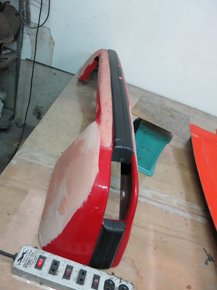 Front bumper being prepped and molded.