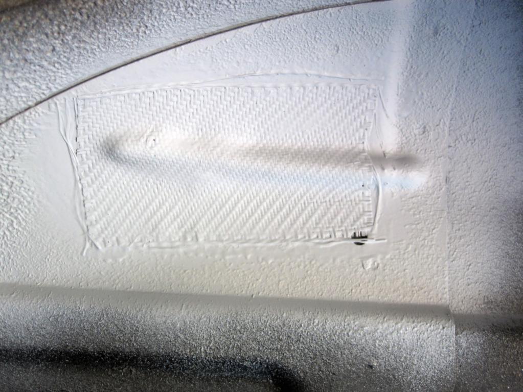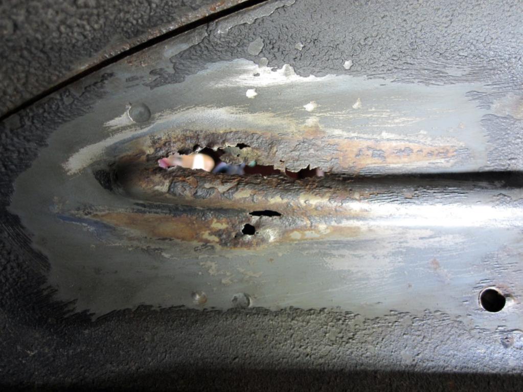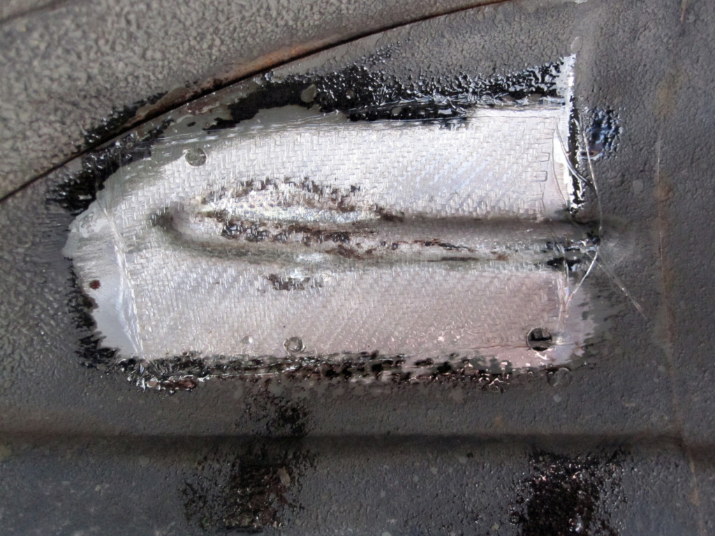 The photos are of the before and after of my rust repair attempt phase one in the rear drivers side wheel well. The fiberglass is a 2x2 twill weave 8.8 ounce glass. The tear strength is about 400 lbs per inch. The patch is 5 inches wide and not quite 3 inches high. I used a wire wheel to remove all the undercoat on the first photo and before I applied the bandaid I also removed all the primer. That is some tough primer. The bright white appearance is not from the fiberglass. That is from the shiny metal underneath. Fiberglass when whetted out with epoxy is pretty transparent. This rust appears to have come from the inside of the car. It looks like the interior primer must have gotten scratched at some point and the foam rubber pad trapped moisture against it. Over the long years the rust spread. The damage on the inside is far greater. I am going to finish up the wheel well side of things and I will show the inside at a later date. There are a couple of other spots needing repair and this was a test to see how well this idea will work. The plan is to clean back a little more of the undercoating around the patch and then apply rust inhibiting primer. Finally either just hit it with flat black or apply fresh undercoating or maybe bed liner. This isn't ever going to be a show car, I just want to do a reasonable fix that will handle the junk that happens in a wheel well. I think this is going to work out well.