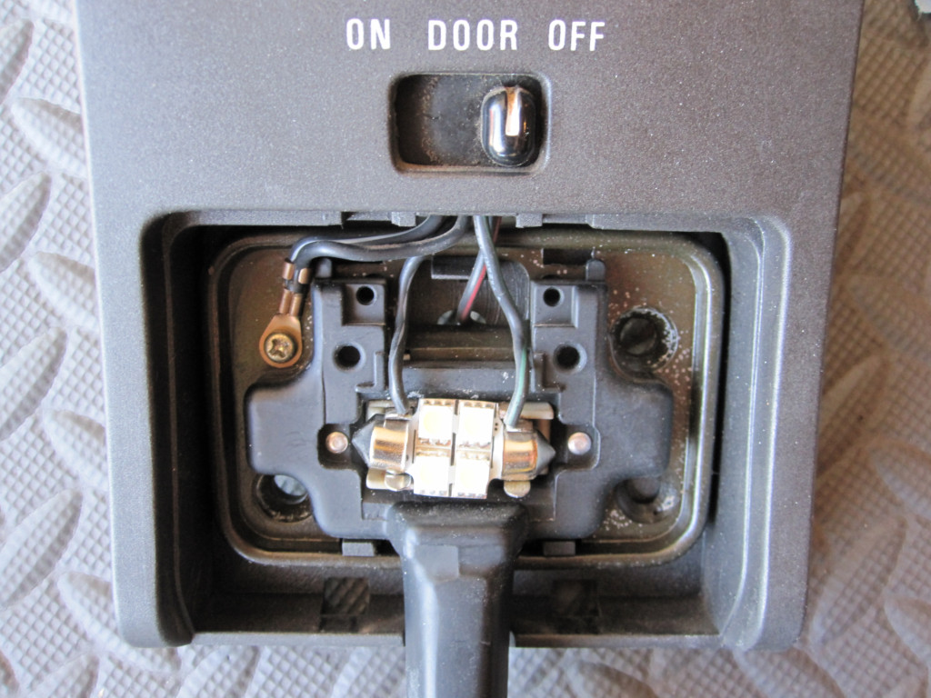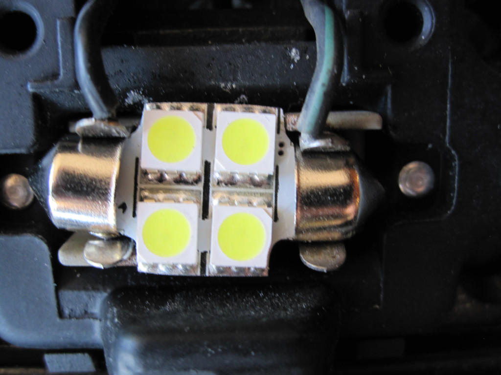 On the GSL-EV I primed my fiberglass bandaid from a couple of days ago and picture is included. Also I had purchased a LED bulb for the dome light. It looked like it should fit when I ordered it but I wasn't 100% certain. It didn't. So today I sanded the circuit board edges to allow clearance between the clips. While doing so I knocked off one of the contacts and soldered it back on. You can see a little solder on the outside. I should clean it up but I am afraid I will break it again so I am calling this good enough. It is so bright you can't look at it. Illuminated the interior nicely. Because of the futzing around I can't recommend this as a general replacement but if you want to mess here is a link: