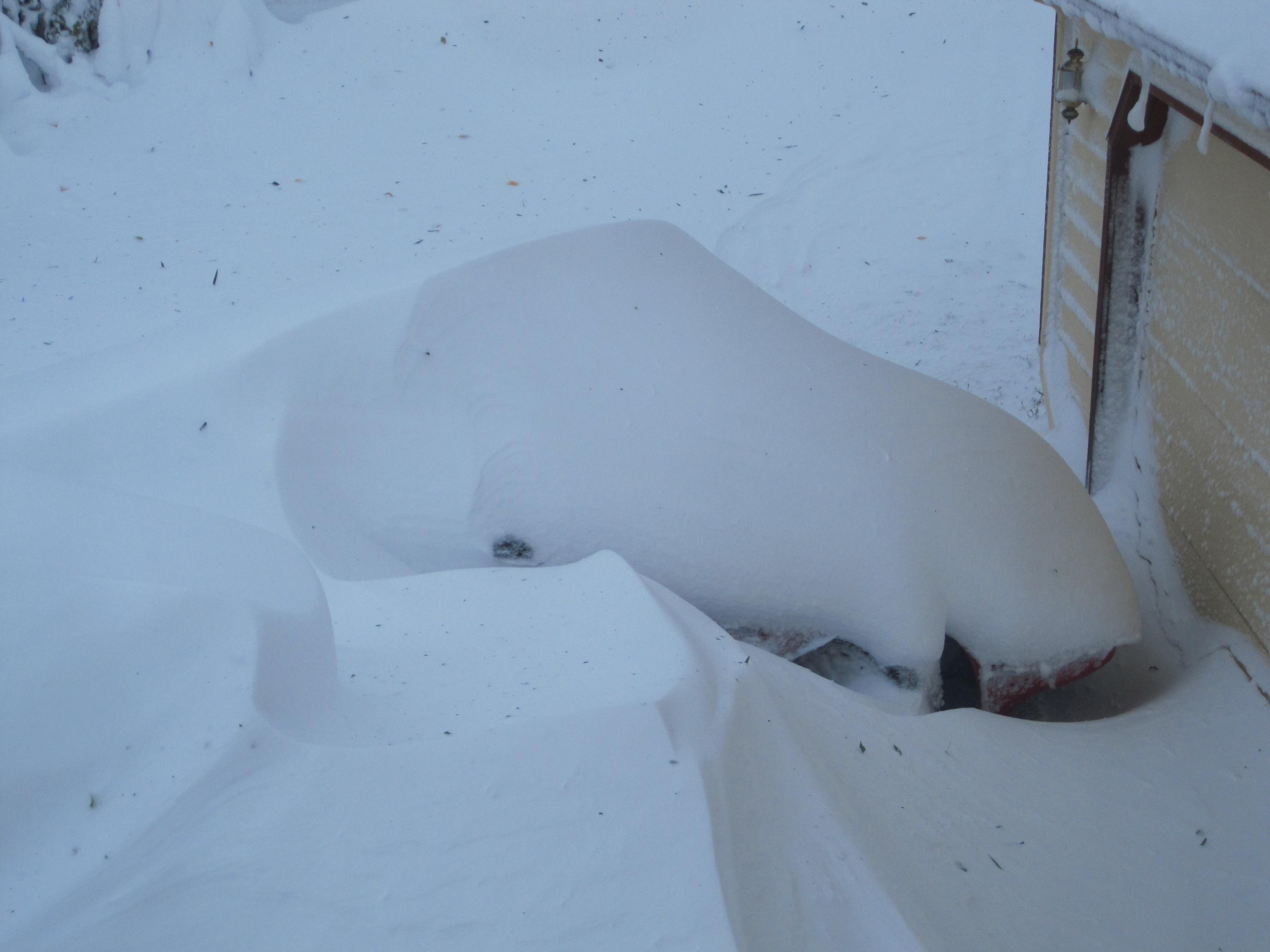 Saturday morning Oct 5. We had a blizzard the night before. 23.1 inches of snowfall. There is a red 85 GSL-SE under that snowpile somewhere. About a third of it melted off Saturday afternoon and on Sunday. I was able to fourwheel out about 90 minutes before sunset on Sunday. Trees broken down everywhere around town. I lost power for just a couple of hours on Friday. Still don't have my cable back. Posting this through my 4G phone connection.