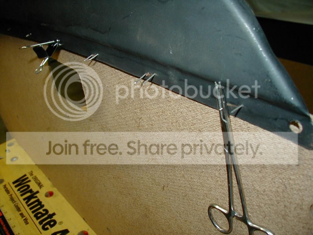 Only tricky bit in this is that the original attachment of the fiberboard to the metal cap strip was via some seriously heavy-duty staples - - imagine having a stapler that will punch 16-ga steel wire staples through mid-gauge sheet metal! - - & that method's not open for reattachment. I may drill and re-wire the original staple holes by hand, as I have some stainless wire that would work. Pop rivets would be a nice option but they are too thick.
