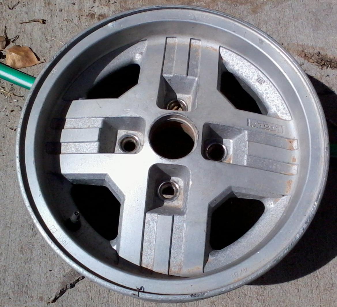 See how my + wheels look fresh from previous owner? The single wheel pic is the odd one. The others have a concentric brush-like finish. Watch for updates on their New and Improved appearance in about a month. Missing 1 cap (bummer).