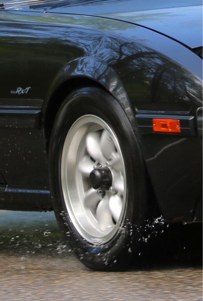 They are American Racing AR95 Estrella 15x7 with 205/55/15 tires. They are very common (too common). I'd love to get a set of panasports like I saw on a beautiful 240Z at the show.