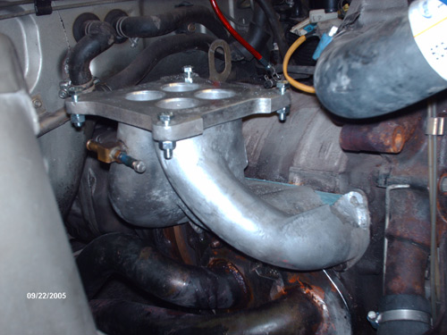 The manifold for starters doesnt bolt up. The hex bolts on the top dont fit flush against the manifold and you have to sand/grind down the area so that they'll fit. I thought the first time I installed one of these manifolds, mine may have simply been defective. Now w/ one320fc's experience last night - with a used manifold - you could see where the previous owner did the same.