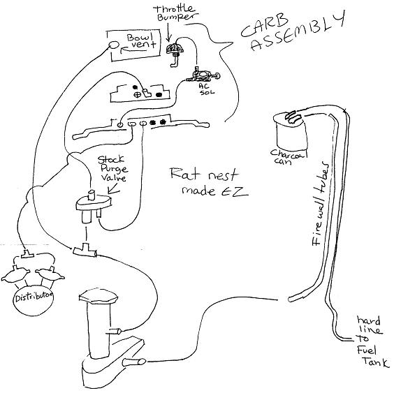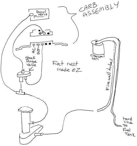 Another tube connects your charcoal canister to your carb vent, and a third connects the other nipple on your centre iron to a fresh air source (your airbox).