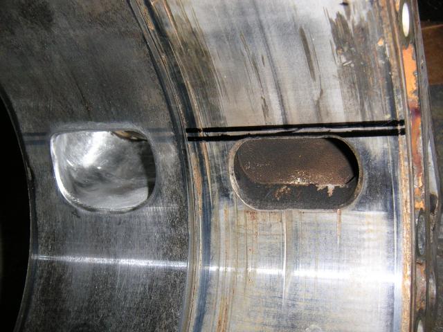 See those two sets of marker lines? The lower line represents a stock T2 port. The upper line is where I ported to. I also opened the port a tad sooner than stock with the addition of a slight rounded edge for a correct D shape. Wider to T2 width as well.