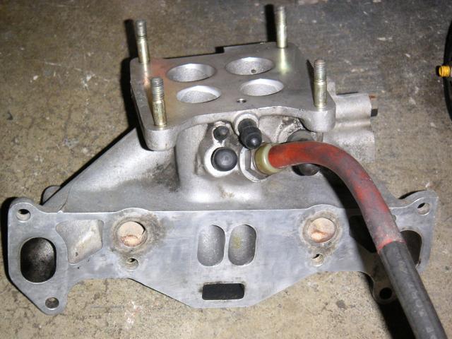 The baja however needs as much low end as possible. The high end is less important. To get back to what I was talking about earlier, the J-spec intermediate plate had short ports all the way through. While these may have worked on the stock setup with its channeled manifold, its tiny jets (90/140) and huge air bleeds (90/160) on an automatic (came with a counterweight woohoo!) and the points-friendly B6ET (very hot) plugs, not to mention its 190°F thermostat (too hot for me) in a Luce or some other luxury car lazed about town, I somehow very highly doubt it's going to be a good setup for the baja... unless I change things around.