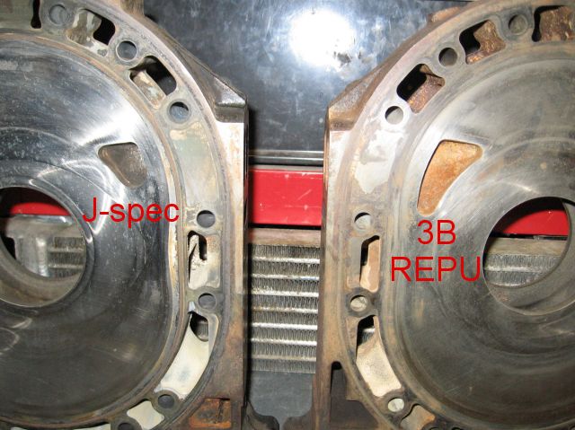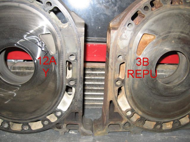 The REPU engine has true '74 3B castings and rotor housings with the MAZDA font above the dowel pins. The intermediate ports are short on the outside and tallish on the inside. They close 10° later than all '76-'85 12As and '76-'83 (carbed) 13Bs. I refer to them simply as '74 spec ports.
