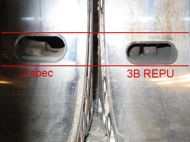 trochoid, I don't have power figures at my disposal. The US-spec GSL-SE had 135 HP with the best low RPM torque starting at a lower RPM than any other engine (Except maybe the 20B) thanks to its even shorter ports, although it depends whether the engine was US or J-spec. I've seen both examples and one has intermediate and exhaust ports identical in timing to my J-spec. The other has exhaust ports like the REPU and the primary port timing is even smaller. Seriously, the ports are so small it's hard to poke your thumb in it. I'd take pictures but it's currently sitting in my friend's GSL-SE. As for which is J-spec and which is US-spec, I don't know as the engines' pasts are a mystery. I know the RE-EGI came in the Luce as well, so maybe they got one set of ports and the GSL-SE got the other.