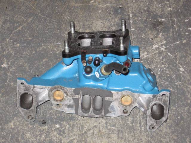 Here's the '78 RX-4 manifold. It is very similar to the J-spec manifold, except it is lighter and the funnel is entirly cast as opposed to the J-spec where it had to be machined. I feel the rough surface of the casting will prevent fuel-wetting moreso than the J-spec.