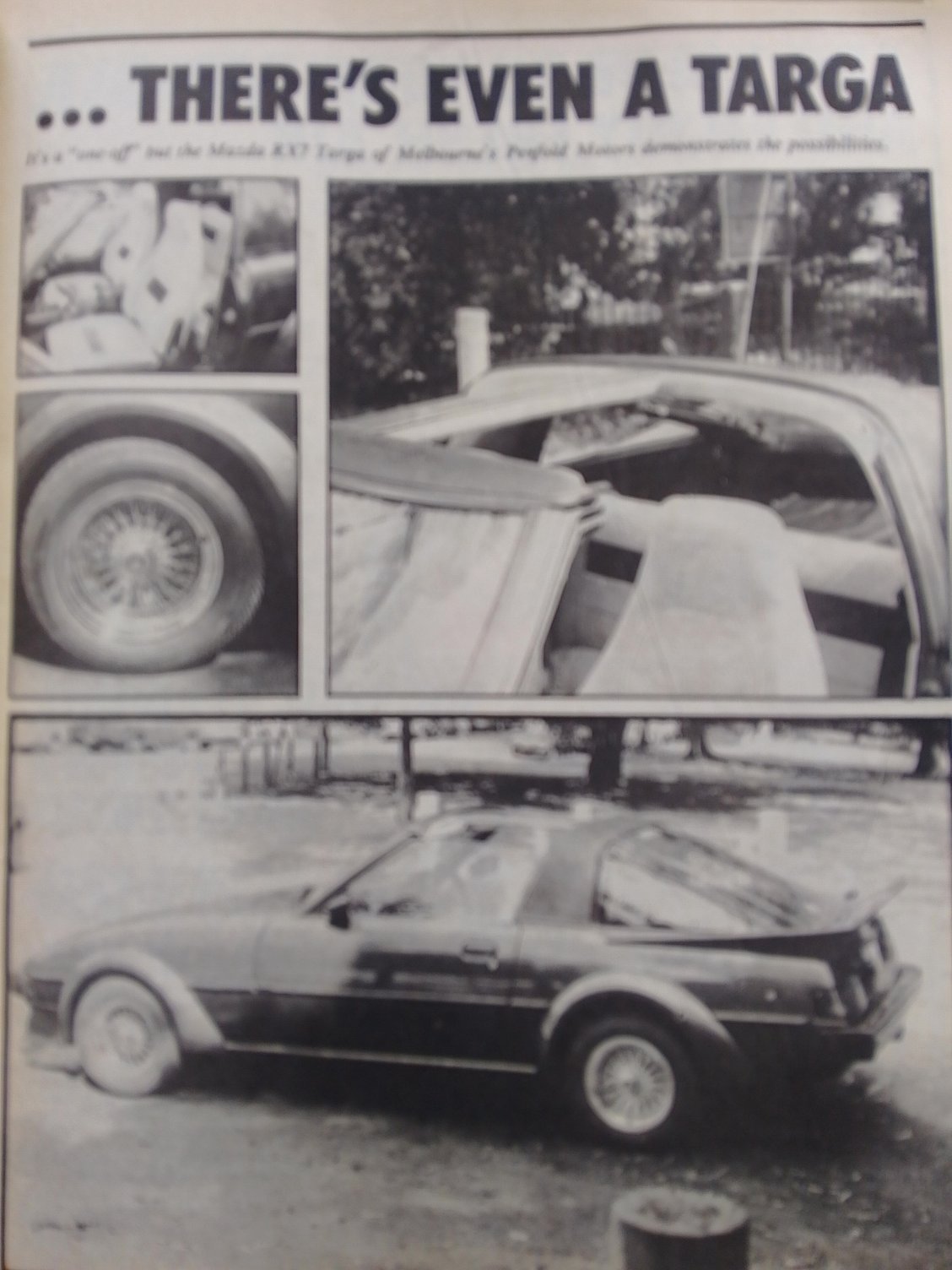 I thought I should post the following photographs. They form part of the history of the Mazda RX7 convertible car story in Australia. I believe less than 20 convertibles were built, the majority being aftermarket or private conversions plus the Mazda Australia contribution. This is a page from a publication of sorts and depicts the conversion workshop of Convertible Cars Australia. The article states 6 cars could be converted at one time. The cars appear to be a mix of Series 2 each with different wheels. Some may be Japanese imports? This appears to be a Series 3 conversion. Taken from an article - this is a Series 3 Australian conversion. I am unsure as to whether it is a Convertible Cars Australia model?