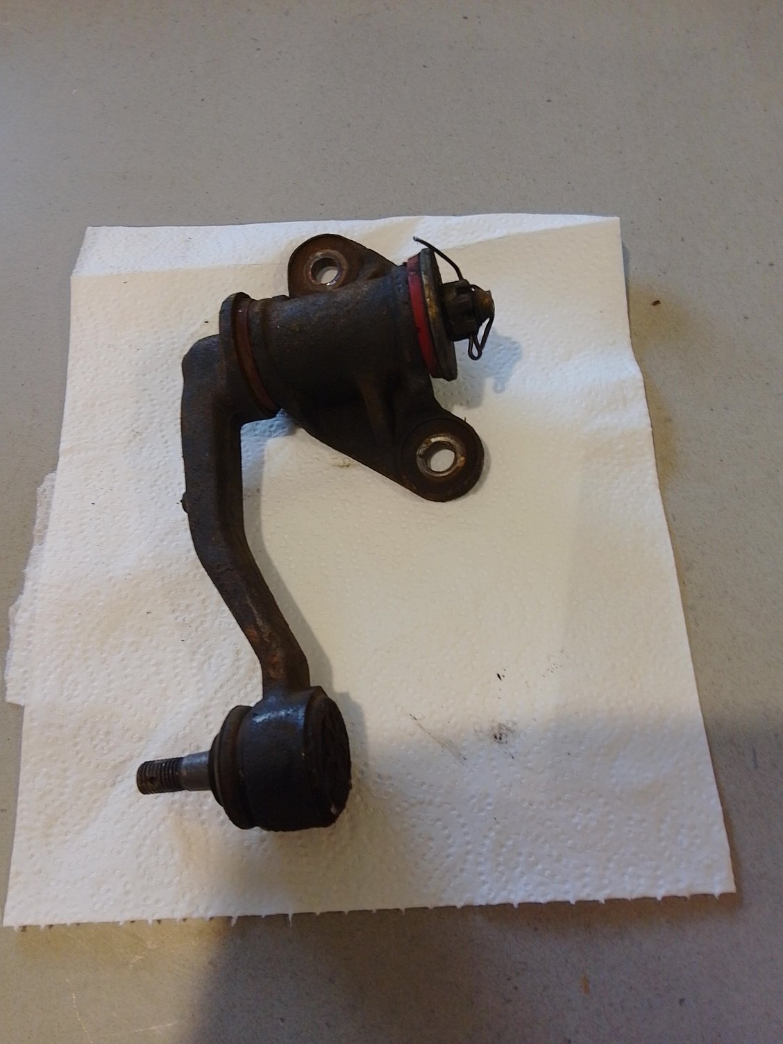 This is what a 129,000 km odd idler arm looks like after being removed from the convertible. A local firm specialises in restoring steering components and I have the new Mazda bushing to fit. These are hard to find so it might be worthwhile to restore it rather than throwing it out. The rear shocks on the car, are KYB Excel G, in new condition which I changed out for KYB AGX.