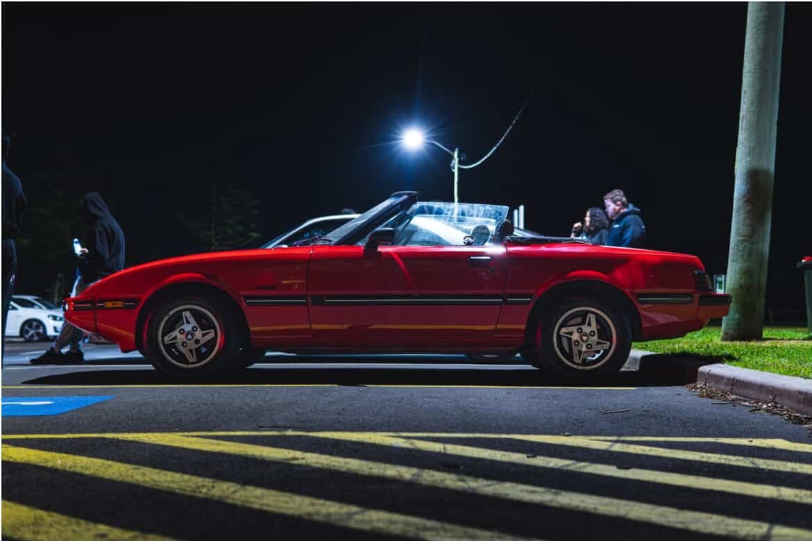 Note the absence of "RX7 Convertible" badge on rear which differentiates aftermarket cars to the six from Mazda. Also the spoiler looks good! 12A engine