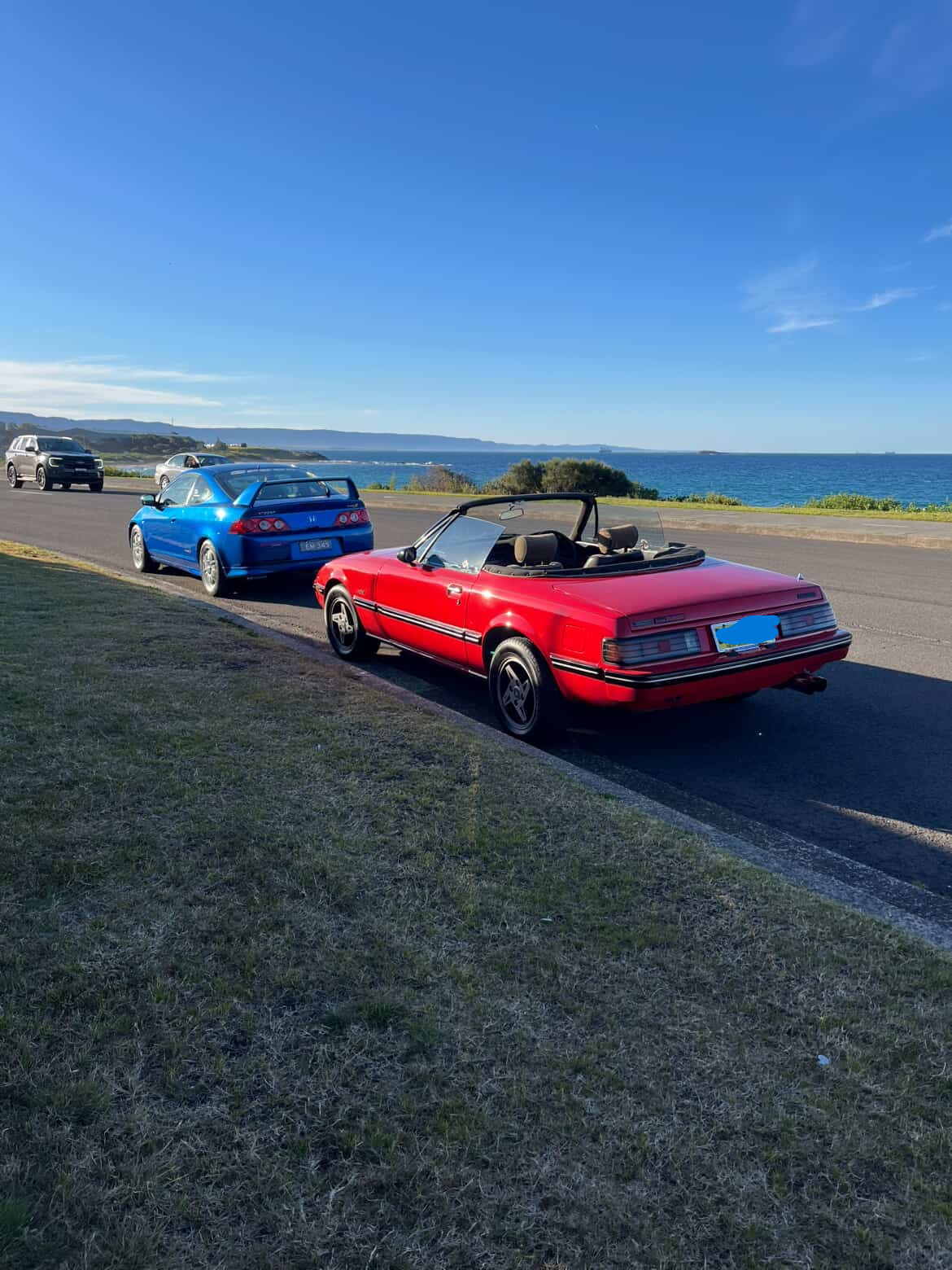 It was a busy day with the Coupe in the morning and then I drove the Convertible out to a car club meet. I was followed by an older driver with an immaculate FD RX- white. You can see it is a beautiful day by the beach.