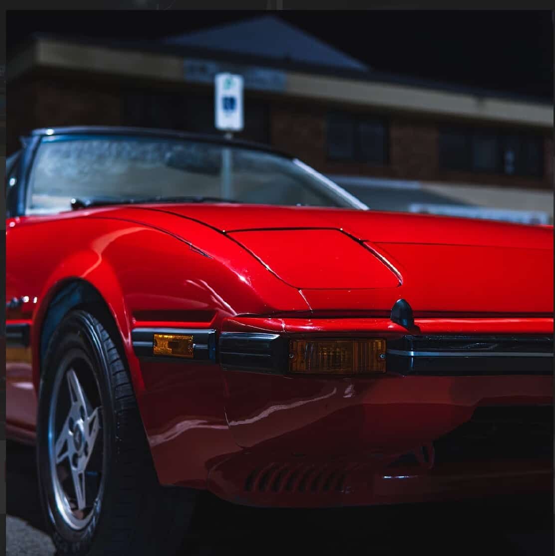 The Mazda RX7 Mirage of which 25 plus the Penfold Mazda prototype were built. They came without aircon, radio and had black vinyl interiors with apparently an extended gear shifter for racing. Note the cut outs around the windows and the edging. This car was restored with a 12A monster port engine.