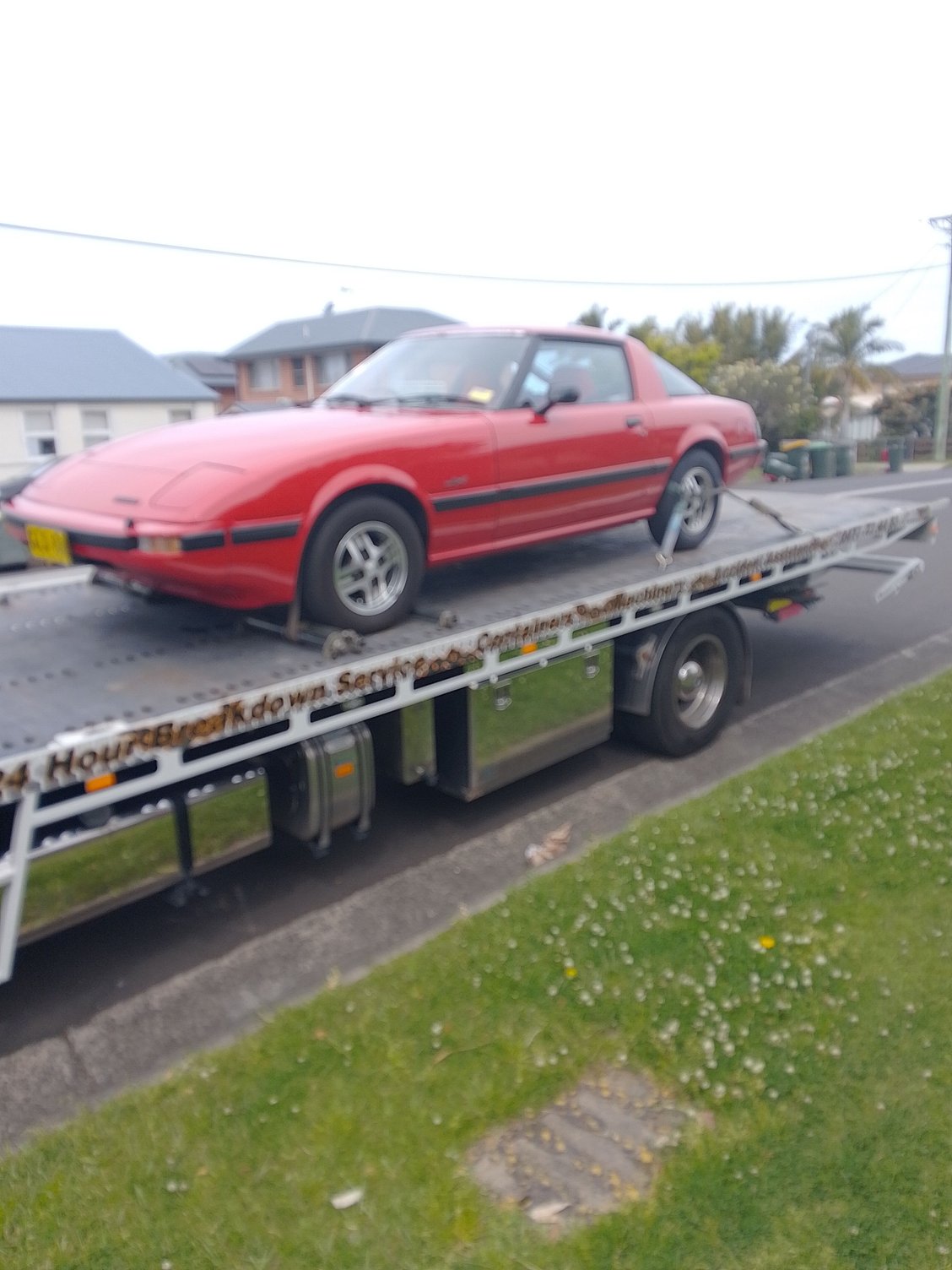 RX7 Heaven - the Coupe arrived after a 3-hour trip from Canberra. The car fired first time under full choke on the back of the truck, and it feels like a very strong engine plus the gearbox is very smooth. My son agreed it is very different being in a Series 2 RX7 than a Series 3 RX7.
