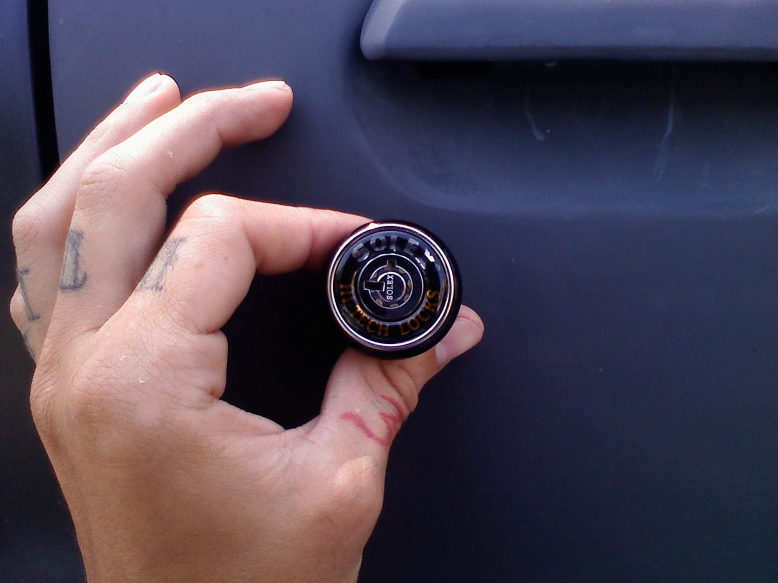 so im sanding my car/paint prep and im taking all the trim off the car. well i have these locks that you use a soda machine key, or computer case key to open it up. sure its theft proof, but i want something a little different, also to lock it i have to close it with the handle in the open position or else it will unlock. kind of annoying..