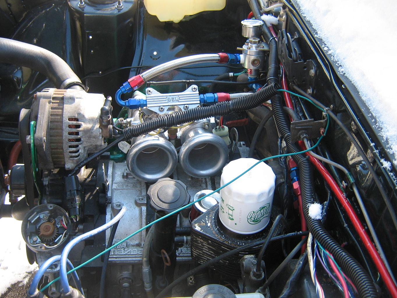 Looking awesome!! All that wiring will be nice and neat with some conduit over it and you should end up with a much neater looking bay without a carby and all the associated emissions junk!