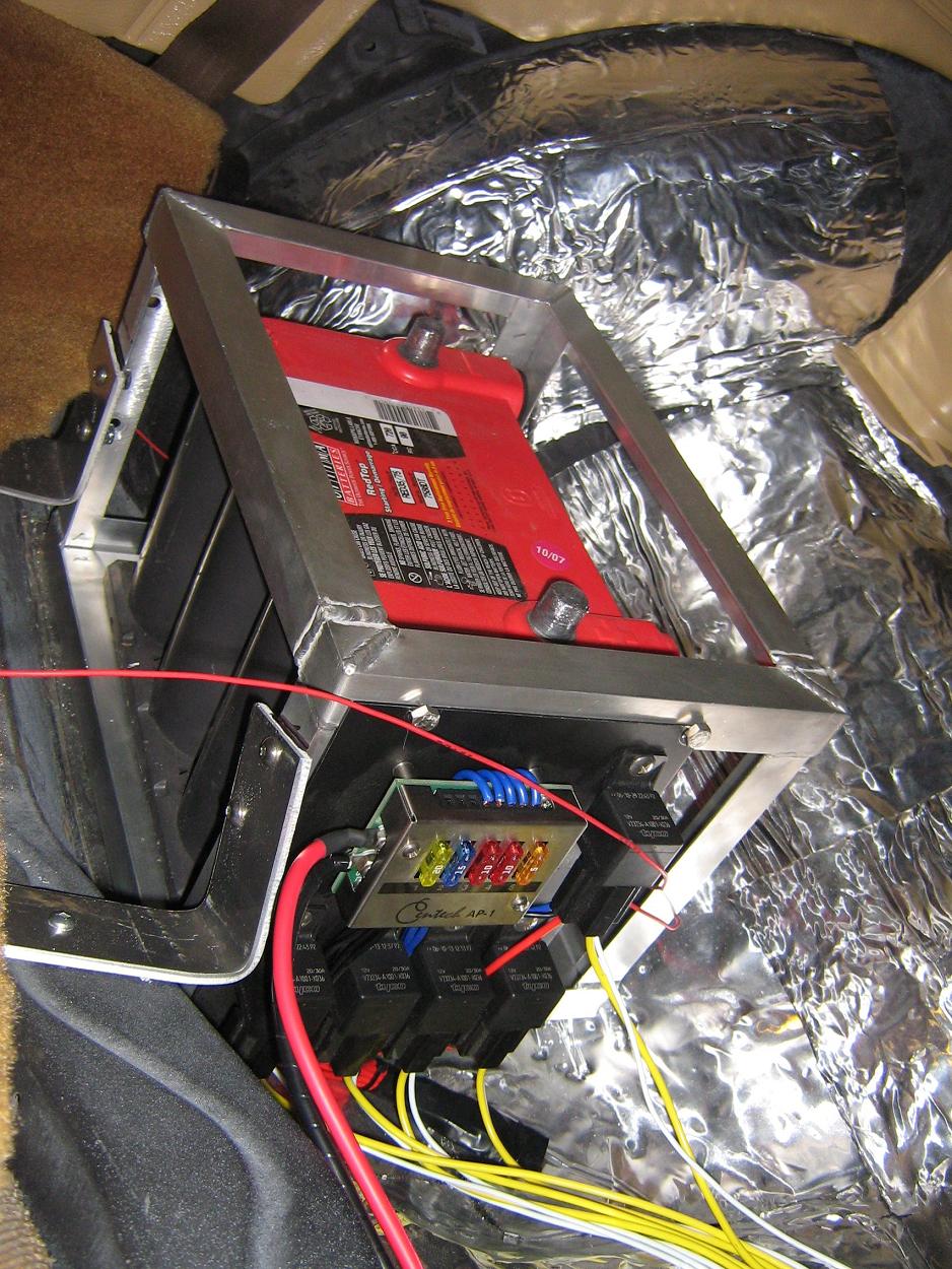 Got a couple of shots today, here you can see the back hatch area panels and the battery case along with the Fuse and relay panel that I did. Let me know how you're liking the color scheme. The relay's haven't been hooked up yet in that picture, but they way they will be done is like so: