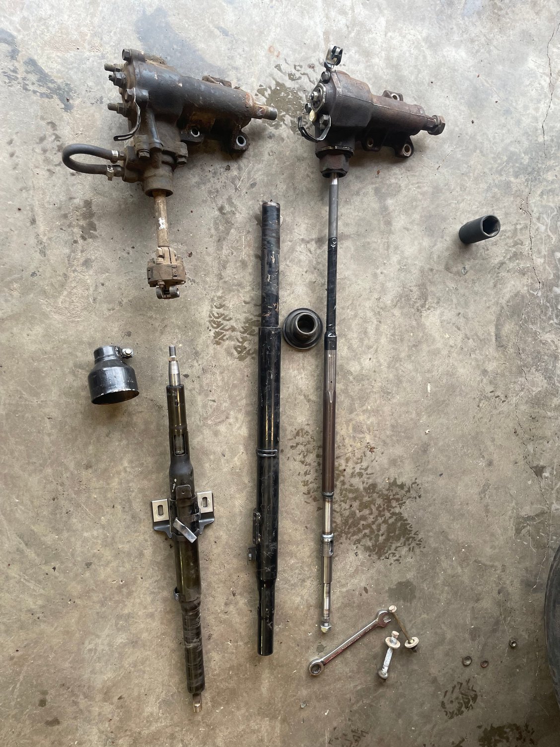 The OEM P/S lower column support is kinda wonky that requires cutting a large hole in the firewall, if anyone has ever tried to cut a large diameter hole without a pilot hole it's not going to look pretty without disassembling half the car and even then the saw will still walk on you.