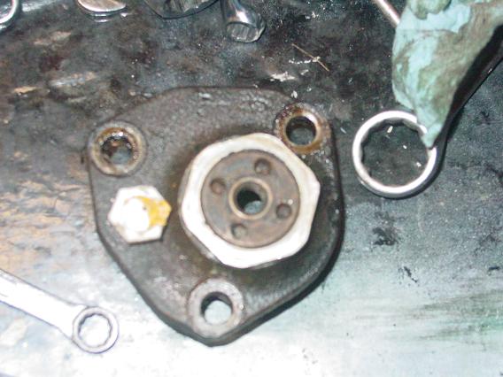 You could just remove the top plate as well (backing out the backlash adjuster) although not all boxes look like this one! Once it is off, then it is really easy to loosen that nut - even putting it into a vice (not recommended). Also quite easy to change the fluid. Make darn sure that once you adjust this, you tighten that lock nut back up and well... Ask me how I know