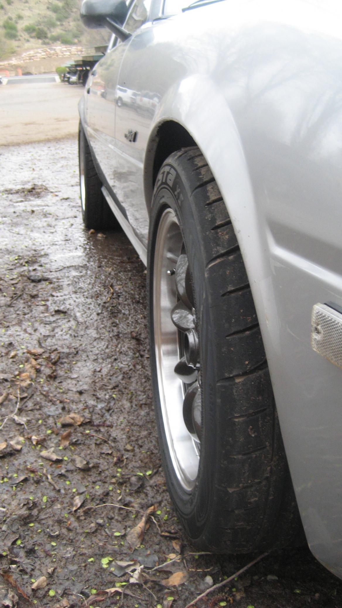 I rolled the fender lips on all four corners just in case... This weekend I took the car down to the RGR SCCA events sat and sun(outside Farmington NM) and I did not have any problems. Just letting anyone know who is wondering about offsets that fit the 1st gen rx7.