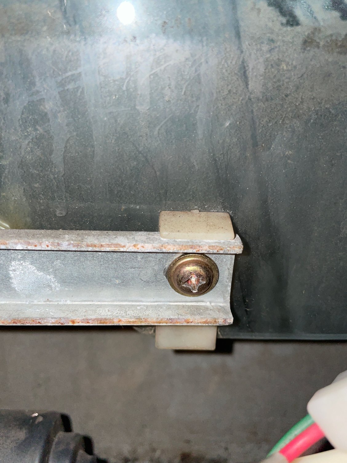 So when the window was broken at first i investigated and this bolt was not there so i went and bought one. to fix the window i loosen this bolt and put the glass back on the track and i tighten the bolt to the left side. should this bolt be loose or tightened to the right side of the hole?
