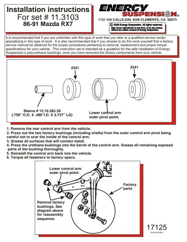 I spotted an Energy Suspension Polyurethane bushing set (Part no. 11.18101G) for sale local to me for a good price. It appears all the components are still in the original packaging, includes grease, instruction booklet and the box. Looks like it was purchased but never installed. I'm pretty sure I will go pick it up this weekend since my bushings are either cooked or are probably original. I've read through some how to threads have a good idea of what I'm getting into.