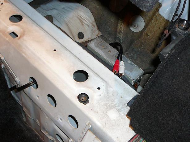 I don't have a subwoofer yet but I will install a little one in the spare tire compartment, so I ran a RCA cable from the center console to the spare tire compartment. It was a little difficult since I didn't want to lift all the carpet, what means that I didn't remove the seat and door rail guards.