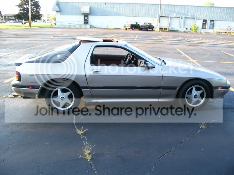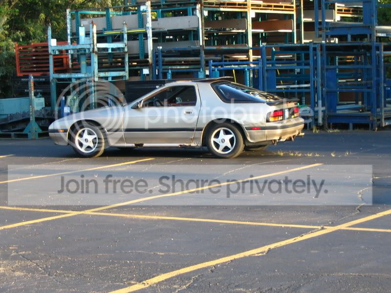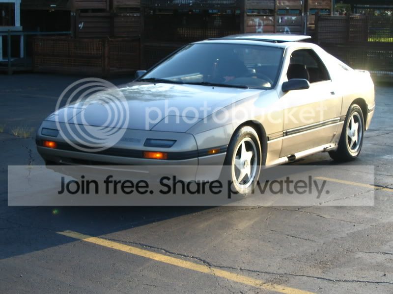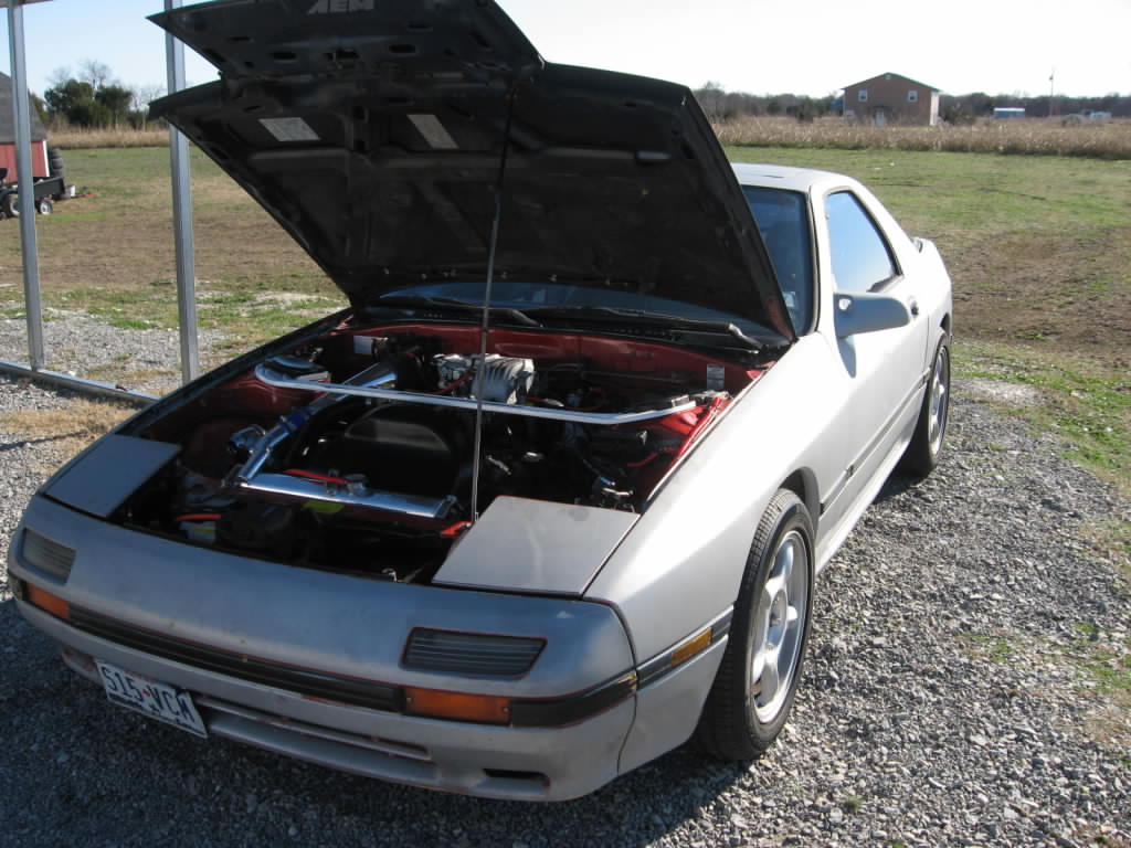Was originally a NA on phone dials, redid the interior with turbo seats and turbo steering wheel, suspension has all new bushings, Tokico 5 way illuminas, RB springs, full 5 lug swap, not just the hubs. I removed all emissions, AC, power steering, and just switched to an EFan. I still need a new brake master cylinder, it leaks pretty bad, and need to paint that side of the engine bay where the fluid has removed the paint. Of course the body still needs paint, but is pretty straight,.This is my first RX7, had her since 2000, motor still ran fine at 215,000 when I pulled it, I figured I owed it to her to fix her up and make it a real flamethrowing Hondaeater. I'm far from done, still wanna relocate that alternator, but since this has taken over a year, I'm just happy to have a running car after all the BS that comes with changing with so much stuff. I wish I had a pic with the shine front lip, maybe I'll post later, its nice