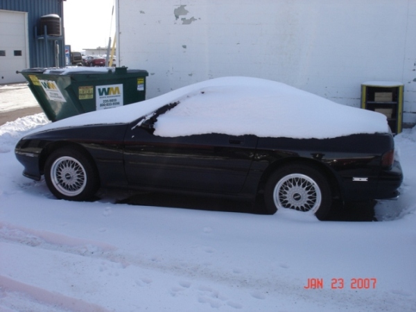 I'm not sure if you guys ever do this here (new to the community) but over at mx6.com we always posted pictures of our cars when it snowed. Last night the Midwest got hammered pretty hard. Anyway, lets see some 7's in the snow. (Sorry about the quality, had to use the webcam on my the lappy).