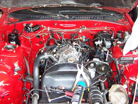 i also untapped the battery cable's and the rest of the bundle that was in the line. i will be relocationg my battery into the cabin. all plugs were marked with a white piece of sticker so when i install the rebuilt motor it will be an easier installation. once i get the right size bolts for the power steering to block off the exposed fluid, i am going to clean the bay and remove the rest of the parts and brackets to prep it for paint.