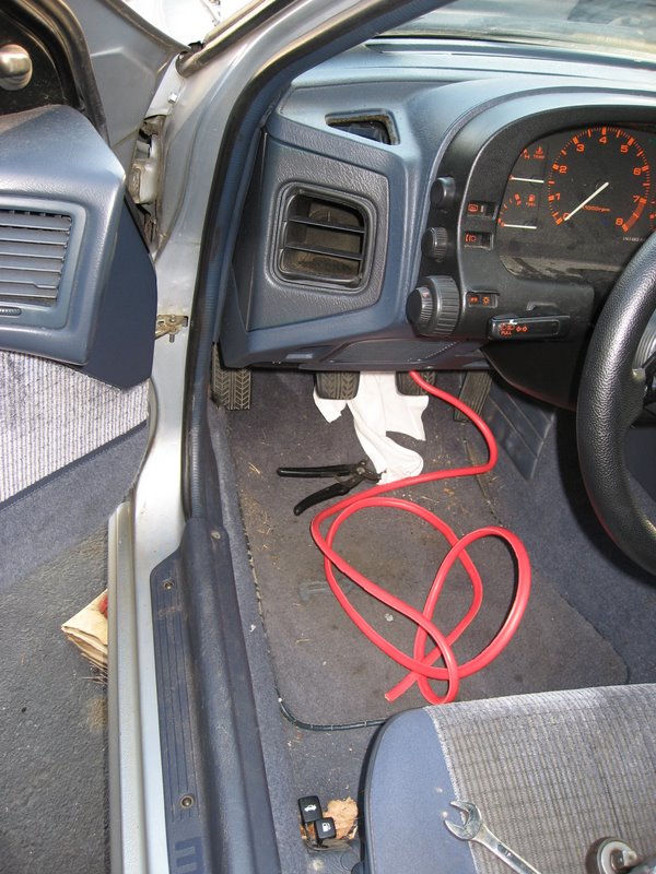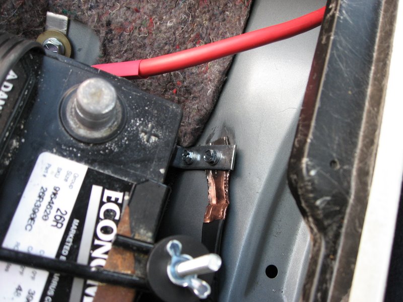 Goto Walmart and pickup some 2-gauge jumper cables for a truck. Goto lowes and buy some copper lug clamps. I needed: 1x2-gauge lug, 2x4-gauge lugs, and 1x6-gauge lug. Just buy a pack of each. I bought some aluminum flat-stock, which I bolted to a plastic battery tray in the passengers side bin. Ground the battery to the chassis in the back and run one wire to the under the carpet alongside the drivers kick panel. Pass underneath the brake master/booster through the firewall. Make sure to tape the cable and great-stuff foam the opening to prevent chafing. Use wire-wraps and wire-clamps to secure everything. Go on ebay and look for a BMW Positive Junction Distribution Block from a M3. Crimp all the cables and reground the negative terminal to the metal. Check the pictures before asking me any questions please.