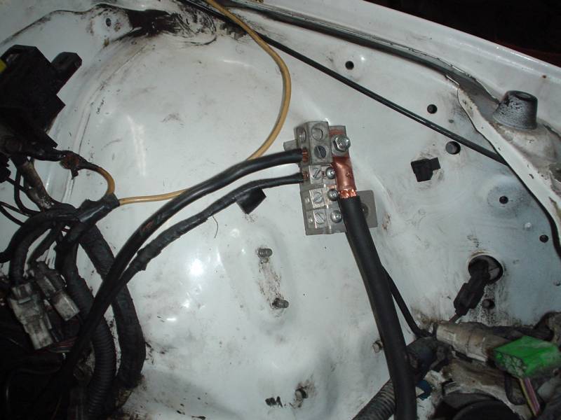 the + wire is pretty easy to route, the hardest part BY FAR was getting it through the main wiring boot in the firewall. I eventually figured out the easier though still nearly impossible route, I soldered a lug connector onto the end of the wire and used a coathanger to "pull" it through.