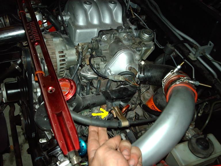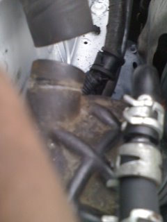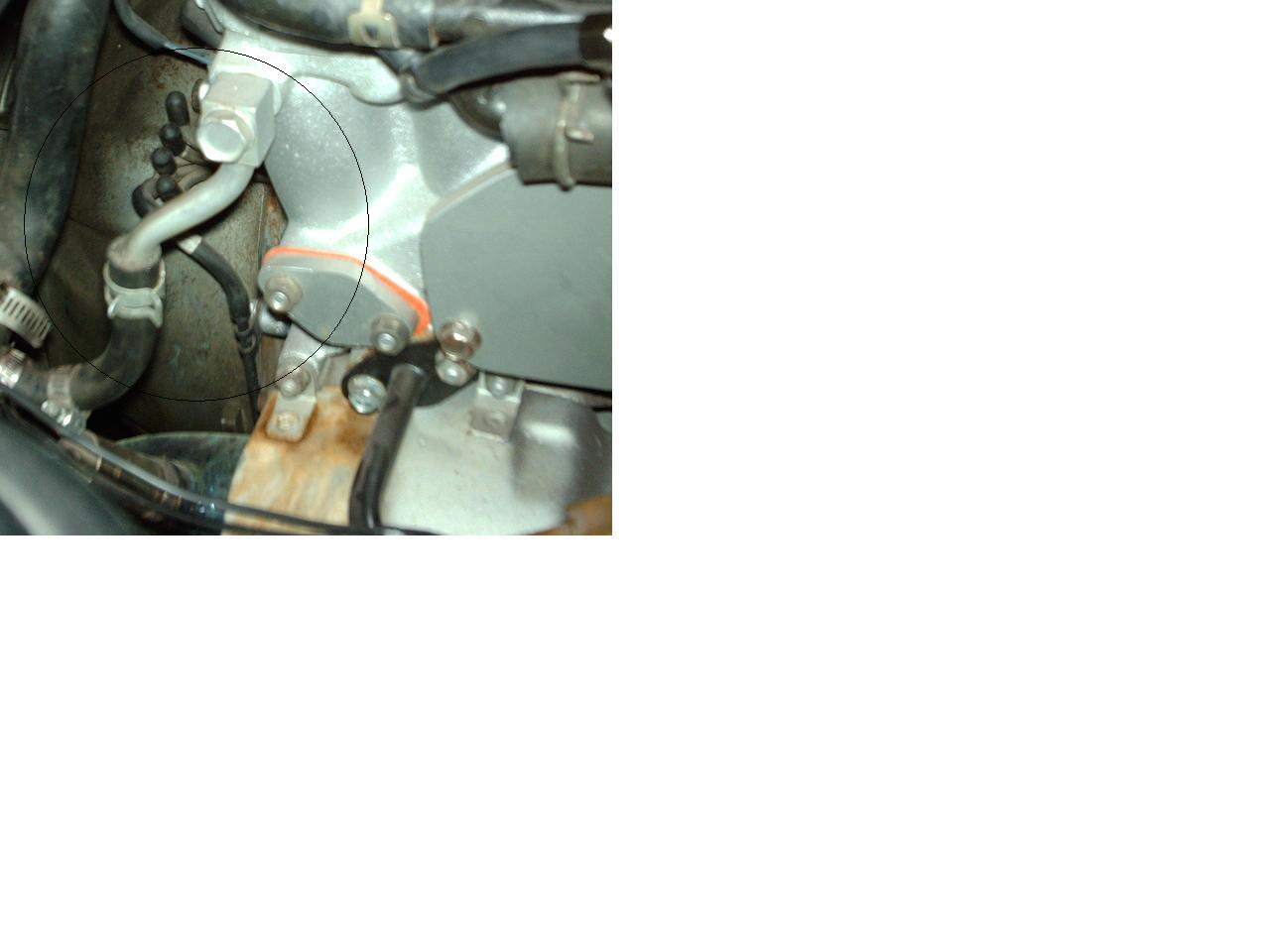 its by the afm and the side of the engine on the passanger side. its pretty dark now so i called it a night. car wouldnt start. even turn over for that matter so i think im having starter issues. abut the weird thing is that i started leaking from the bottom and cant make out if its coolent or gas. *shrugs* ill continue tomorrow