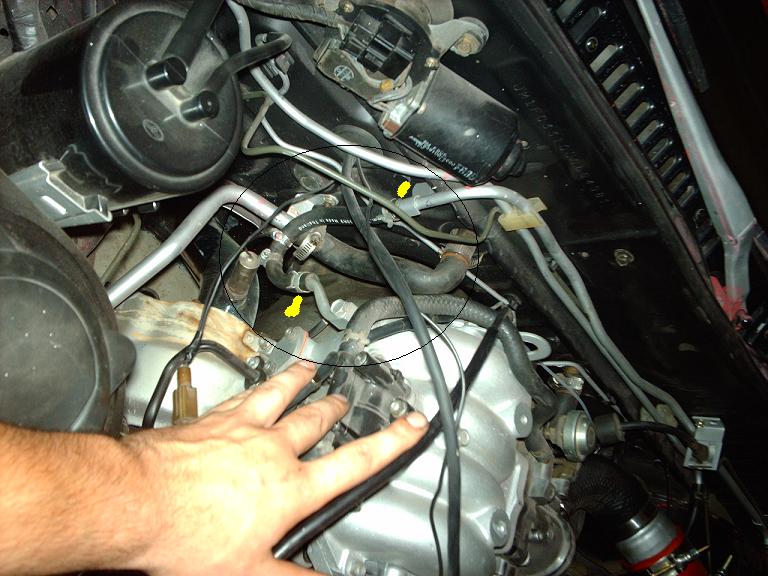 Ok here is the brake booster line. You can see the yellow dots from where it comes from and where it goes.
