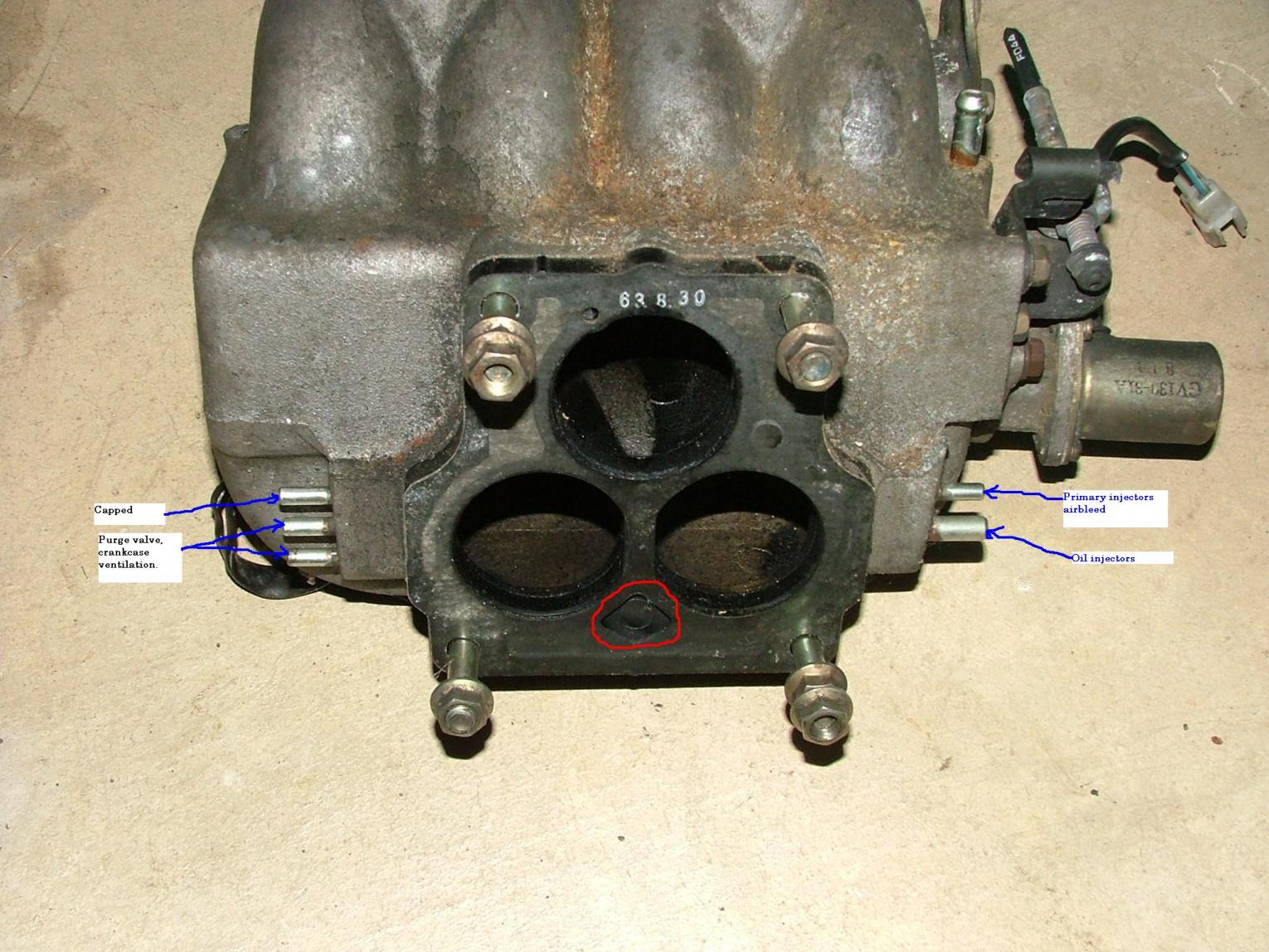 That passage is definately air not coolant. If you look at the TB from the front you will see a round hole at the bottom, that runs the length of the TB to the back. Air is bypassing the throttle plates and going into the UIM. Batman says the thick black gasket between the TB and UIM on his doesn't have a hole in it. Once I put on the gasket that doesn't have the hole we will see.