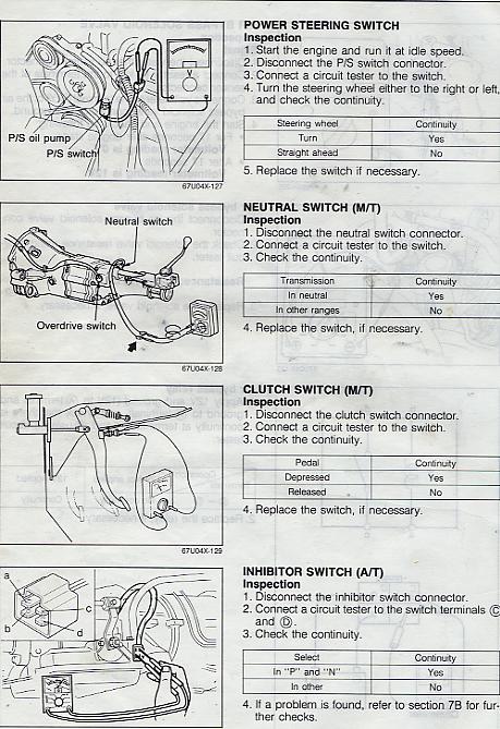 It has you put a 2 Kohm resistor in the water thermo switch(the one on the back of the water pump housing), then put a meter on the brown/yellow wire of the air bypass solenoids plug, start the engine and look for 0 voltage at the browm/yellow wire for 17 seconds after which it turns to 12v. The engine should rev high during the 17 seconds if the plug was still connected.