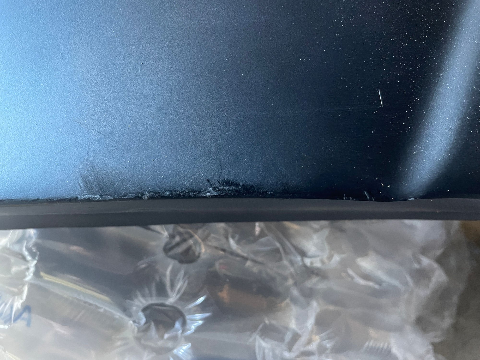 It also looks like there's a divot right in the center of the bumper. I ran my hand along it and it feels smooth so I'm wondering if it was repaired. I noticed this same divot on Duraflex's website so either this is a mistake in the mold or they shipped me the one in the display photo. I can't be the first one to have ordered this right? Someone else has to have ordered one...