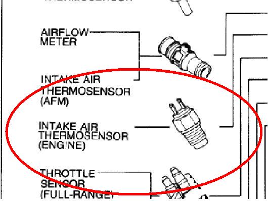 The sensor looks exactly like the one in the photo. But according to the FSM its not the intake air thermosensor because the air intake thermosensor is located below the IC and to the driver's side, right?
