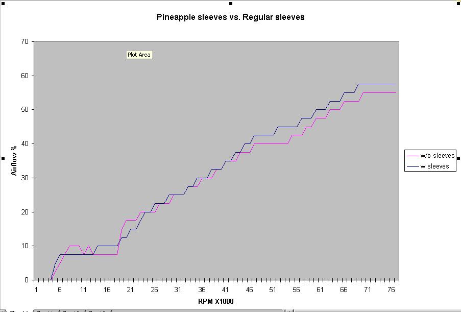 The air flow meter, does'nt have as much to do with the power as the a/f ratio does. If you're running a 10-1 a/f ratio on a n/a, it realy, realy hurts power. The reason I say this is because, when I dyno'd my car I was only seeing around 53.8%(There are lots of people who are running 53%, but not many putting down 167rwhp)....now I'm seeing upto 60%. I made 167rwhp@53%. There is no way I'm making much more than 10rwhp more now. (If that!) and the air flow meter has seen a jump of nearly 7%. I don't think the two are that closely related. CJ