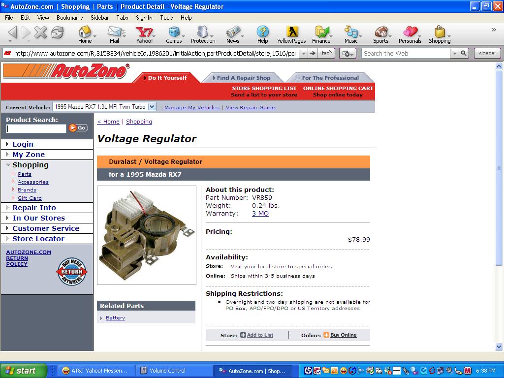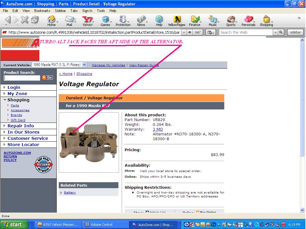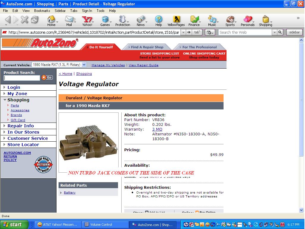 See the last or third jpg I attached in my last post. AutoZone I think. You HAVE to get the right regulator. You cannot put a non turbo regulator in a turbo alternator and vice versa. It's a physical requirement. One regulator jack exits the side of the case. The other exits the aft side/end of the case.