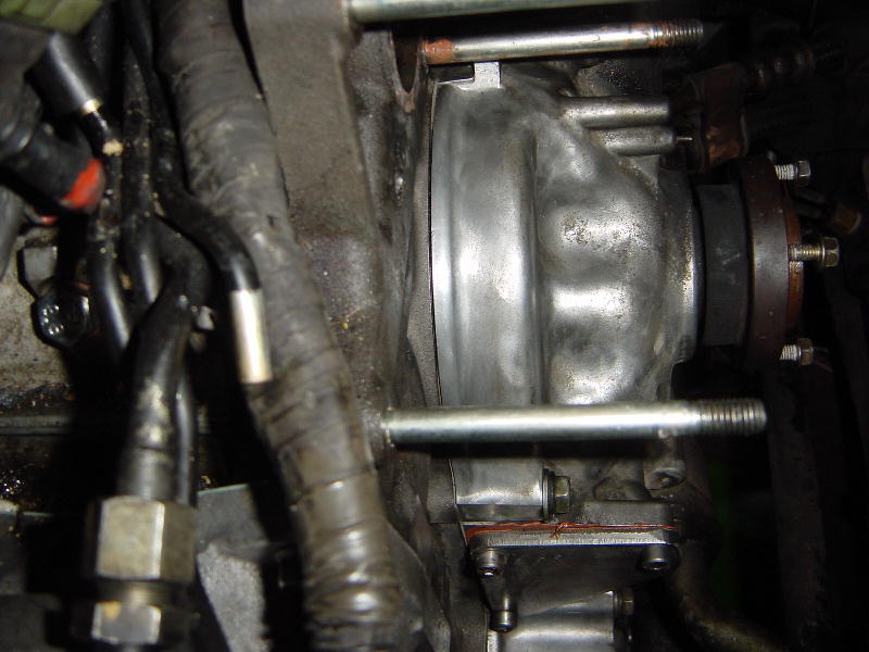 The oil seems to be coming somewhere behind the waterpump. There are 2 choices, the turbo oil feed line and the front cover. I inspected the turbo oil line and it's fine, that leaves the front cover.