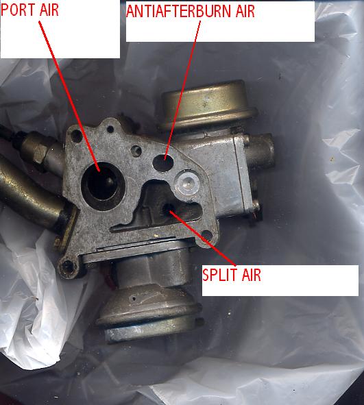There are times when the SWITCHING solenoid will route air thru that split air pipe, but keep in mind, MOST of the air from the ACV goes to the exaust ports right at the exaust manifold. It passes thru the spoked check valve b/t the ACV and the manifold. You did install that silver dollar sized, spoked check valve, didn't you???????? Yes.