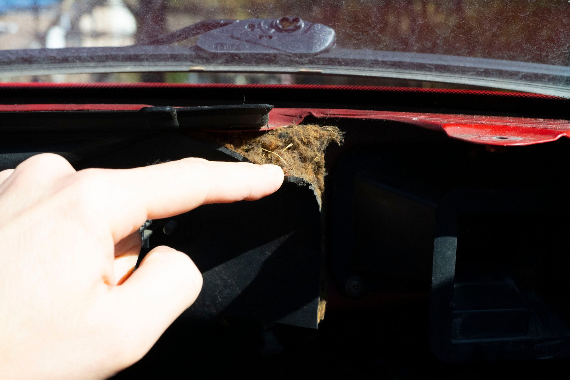 Water leaked from the corner of the windshield cowl area down and soaked the mat. It must have been leaking for some time and been trapped there rotting the firewall. I pulled all of the insulation off with my hands.