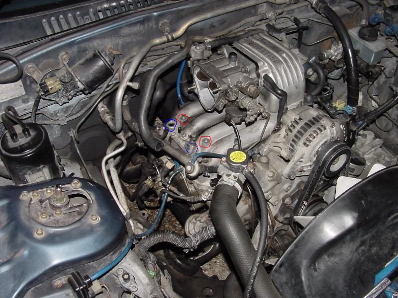 In case you can't figure it out, the blue circles are where the injectors go, and the red circles are where the secondary fuel rails bolt to the uim. And yes, I can take off the uim without removing any fuel lines, but there would be nowhere for the injectors to go.