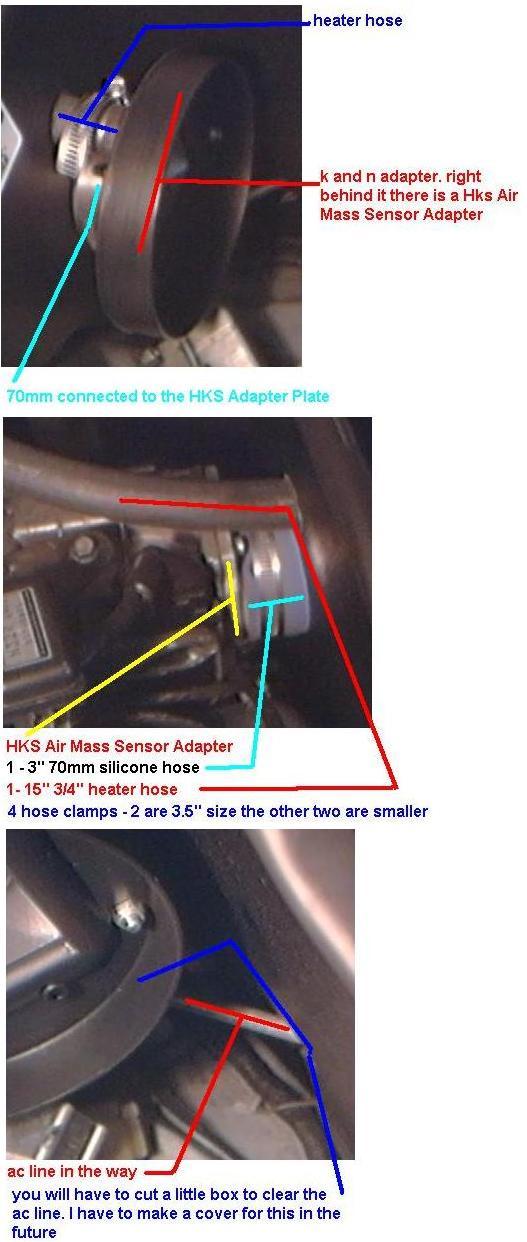 I had to cut a little bit at the bottom where that opening is to make it fit. I have those lines also. I used a bremol to cut the coldbox a little. If you have the filter shown in vaughnc post you will need to get two hks adapter plates and the hoses in the pic. and you will also have to cut out a circle just above the big about a quater size so the heater hose goes thru it.