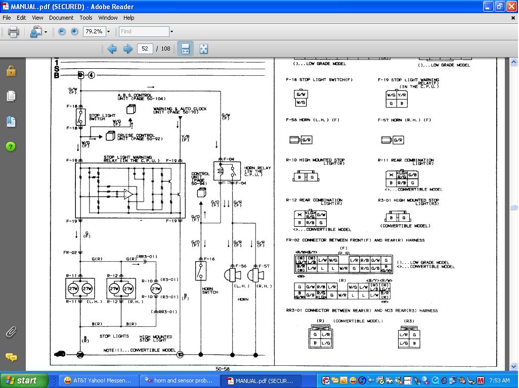 ok, I just got my '86 FC in and it has a few problems. two of the major problems i think are electrical but, I don't know. When I got it, the horn was not working, come to find out, it was unpluged. when I pluged it in, the horn would not shut off. the other problem I think is with the Tachometer. when I am moving, there is a constant and steady beep coming from something. the reason I think it is the Tachometer is because it never moves, like it is not pluged in.(it's got the white illuminated gauges in it.)