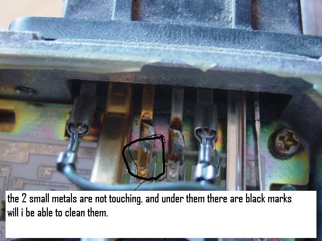 well, in my opinion if you have a soddering remover i would remove the sodder and put some new cause it looks kinda rusted and corrodedon those two middle connections, make sure its a tight connection on those sodder points other than that it looks good in there, on mine they were all soddered together so it might be that the clip isn't getting good connection, but thats just a kinda check while ya got it open kinda thing, also check and see if when you push on the flap inside that that gauge moves with it, othe than that if your gettin everything else just try to push\pull start like everyone else said, and you have checked relays and everything else, if not check some of them, if you have an ohm meter and a manuel its pretty easy